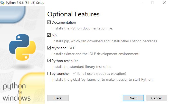 1)인스톨러를 실행하면 기본 옵션으로 설치할지 or 사용자 옵션으로 설치할지 선택함