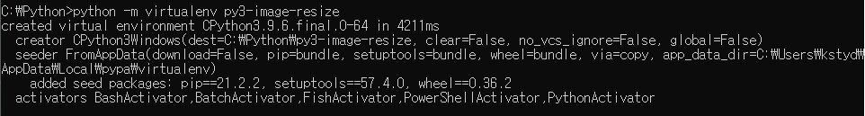 // python -m -virtualenv py3-image-resize (py3-image-resize라는 이름의 가상환경 생성)