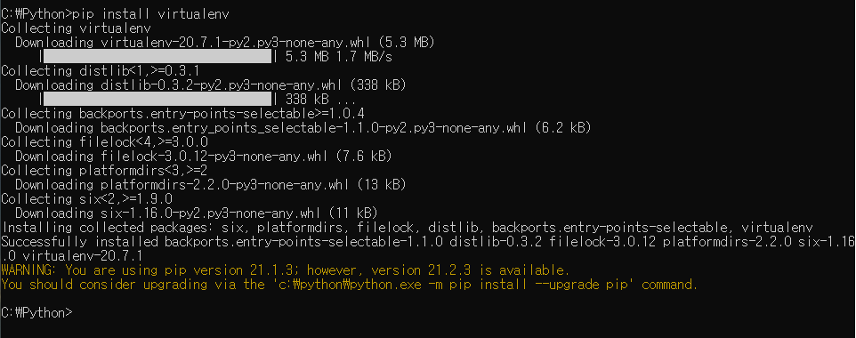 02-2. pip install virtualenv (가상환경 설치 명령어)
